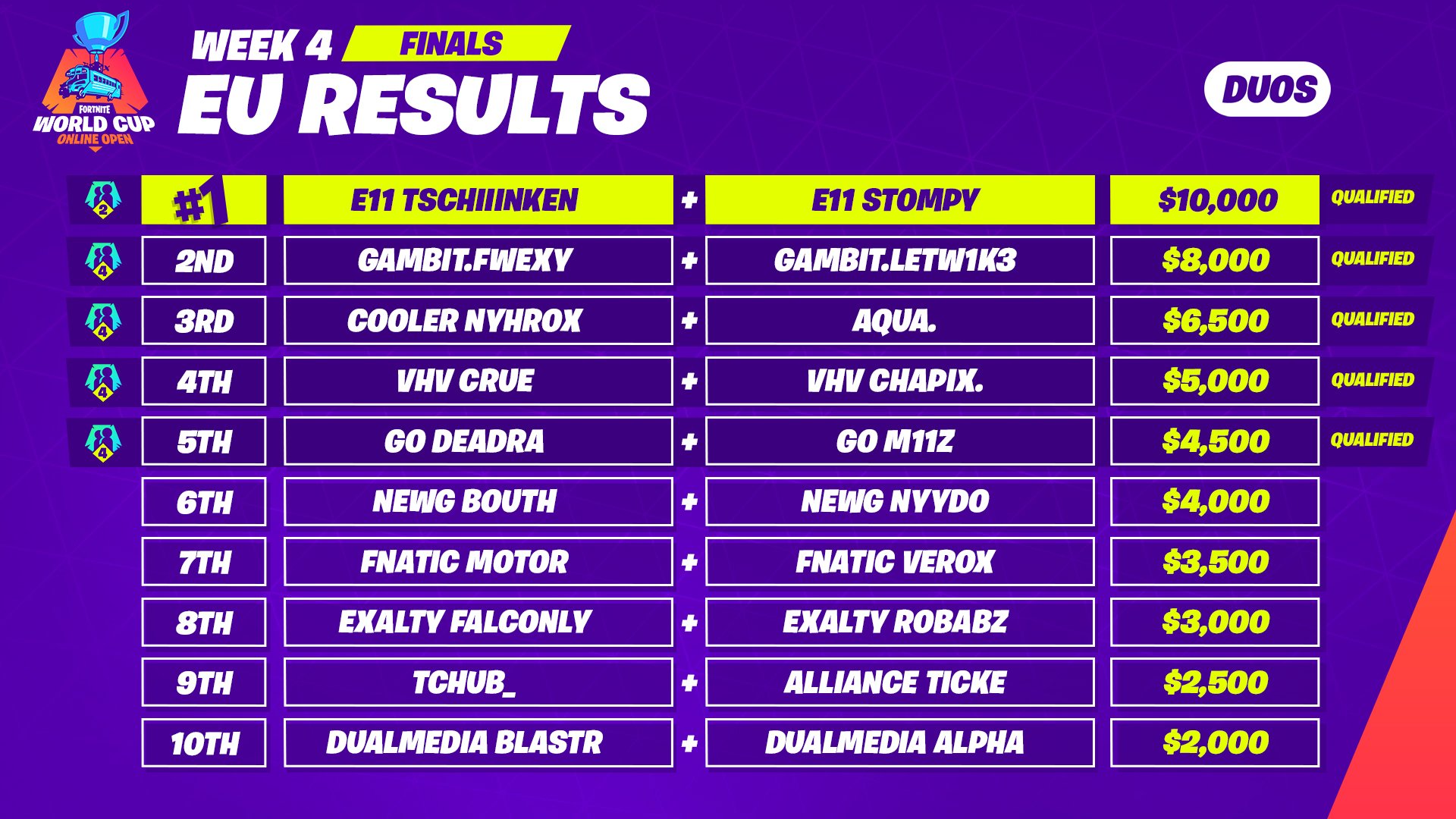 Fortnite world cup standings money.