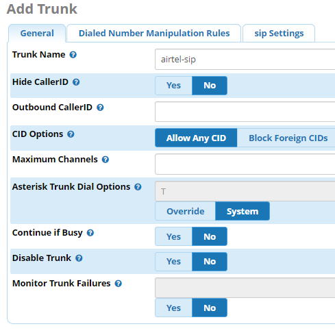 Click on add sip trunk under the general.